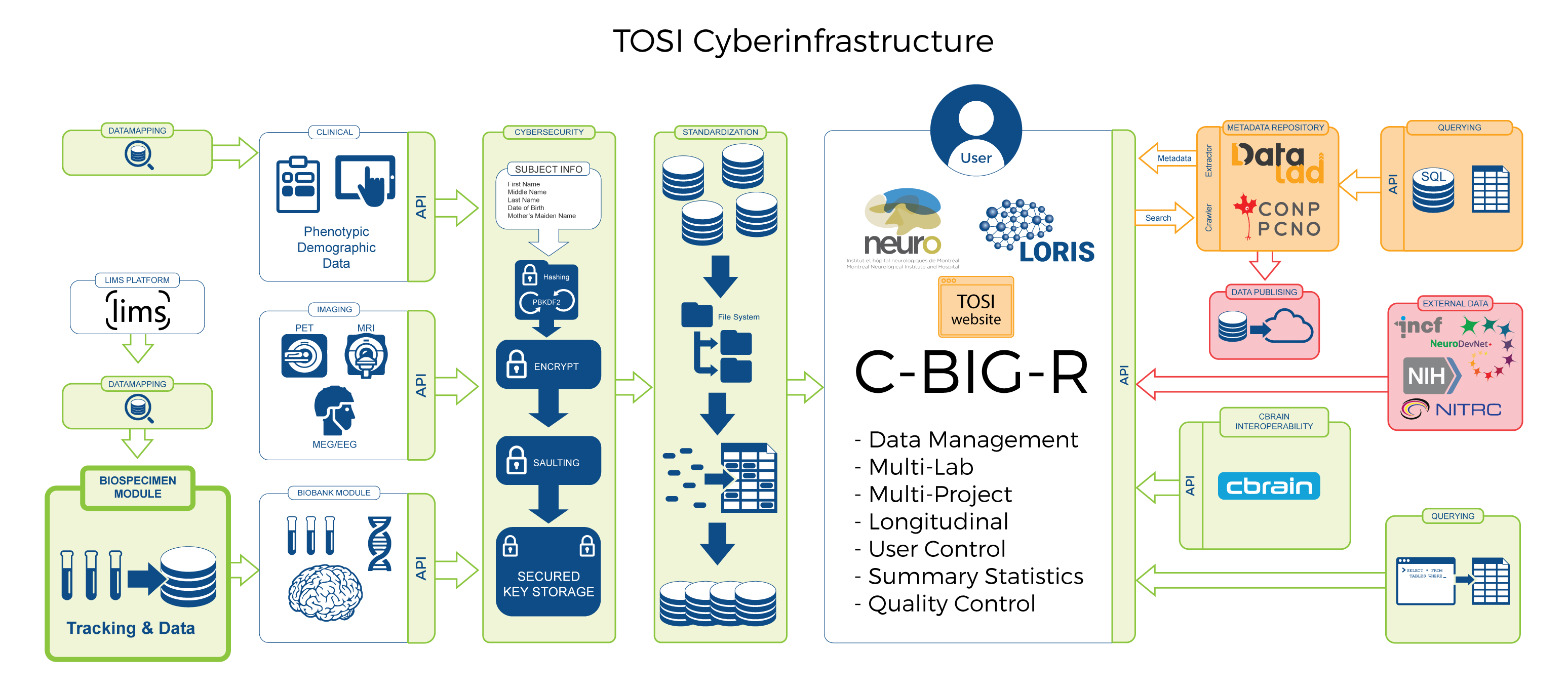Longitudinal Acquisition, Storage and Curation, Interoperability, Reproducibility, Transfer, Anonymization, Security, Privacy, Ethics, APIs, Validation, Quality Control, Protocol Checking, Preprocessing, Analysis, HPC,